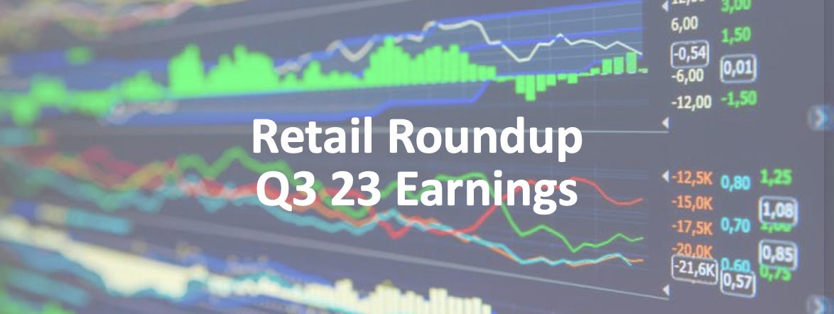 With the majority of retailers reporting their Q3 earnings over the past couple of weeks, I wanted to take the time to summarize the results into a consolidated view