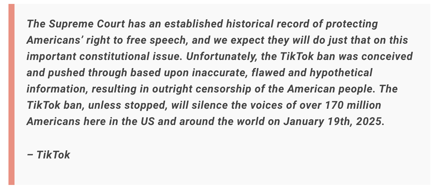 - National Security vs. Free Speech: While the court found the law narrowly tailored to address national security risks, TikTok's appeal highlights unresolved debates about the balance between national security and First Amendment rights. Critics warn of the broader implications for digital platforms and expression.